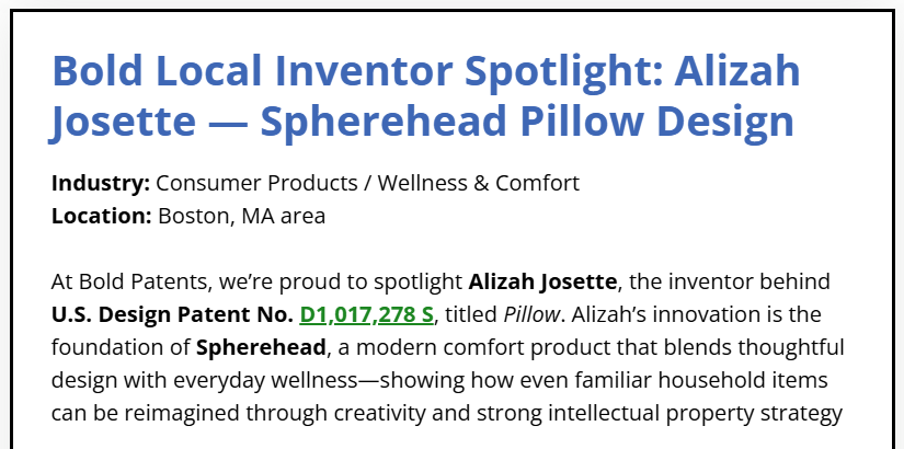 Spherehead is Honored to be Featured in the Bold Patents Inventor Spotlight!